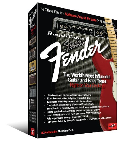 AmpliTube Fender is the first and only official guitar/bass Amp and FX software suite made by IK Multimedia in cooperation with legendary music icon Fender With a collection of 45 pieces of gear collected from the most sought after classic and modern Fender amps (including the '65 Twin Reverb '57 Deluxe '59 Bassman LTD '64 Vibroverb Custom Super-Sonic Metalhead and many more) cabinets stomp boxes and rack effects AmpliTube Fender sets a new standard for software amplifiers. From guitar to bass from country to blues and rock punk to metal whatever style you play AmpliTube Fender is the only amp suite that gives you the world's most influential guitar and bass tones right on your desktop.